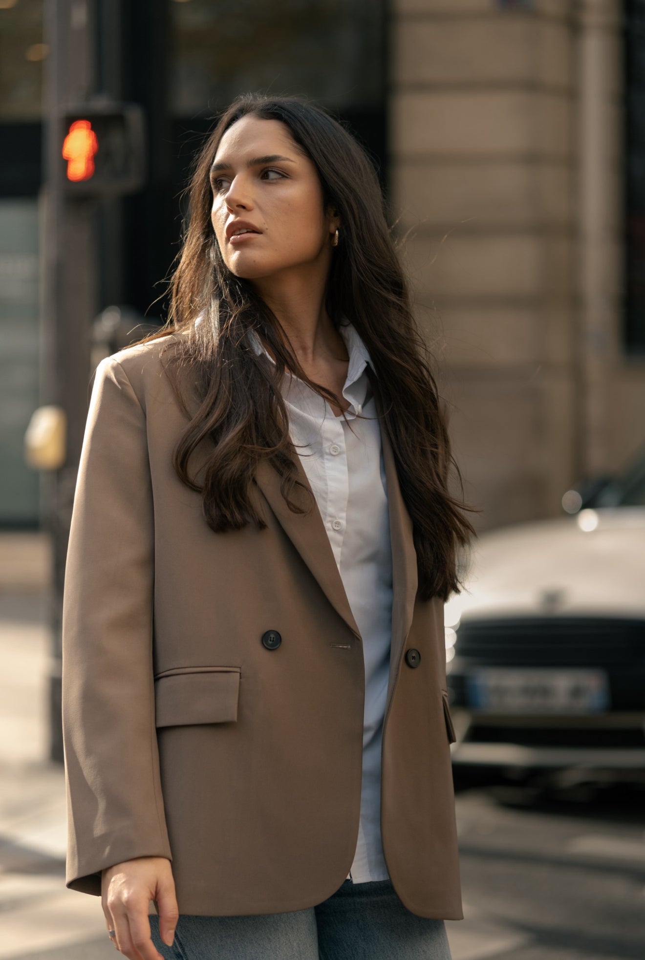 Sa teinte neutre et sa coupe moderne en font une pièce incontournable du vestiaire, à porter aussi bien avec un jean qu’un pantalon habillé.