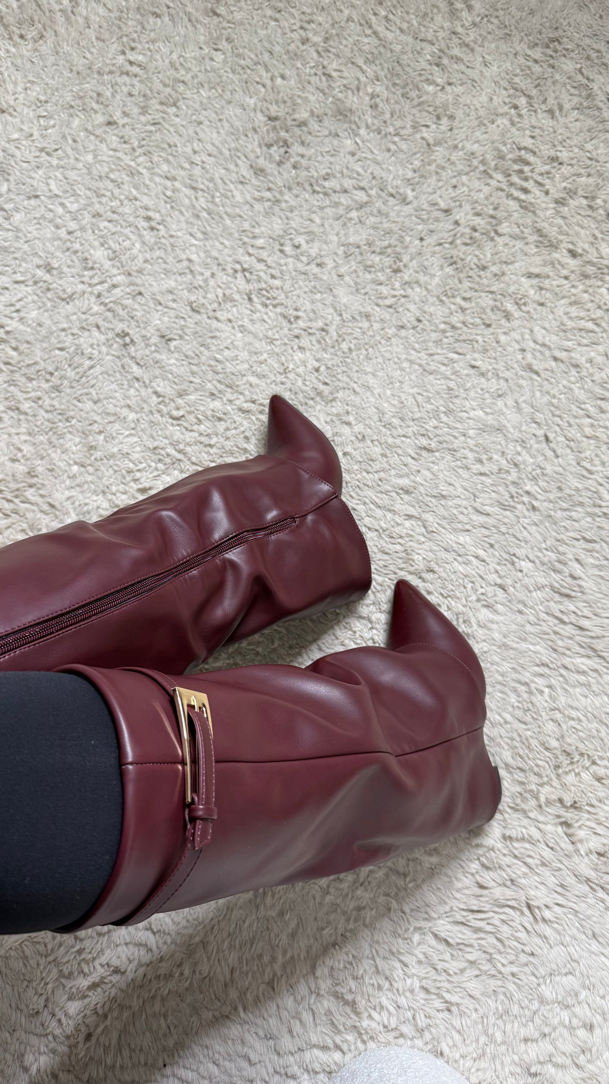 Élégantes et audacieuses, ces bottes en simili cuir bordeaux apportent une touche raffinée à toutes vos tenues.