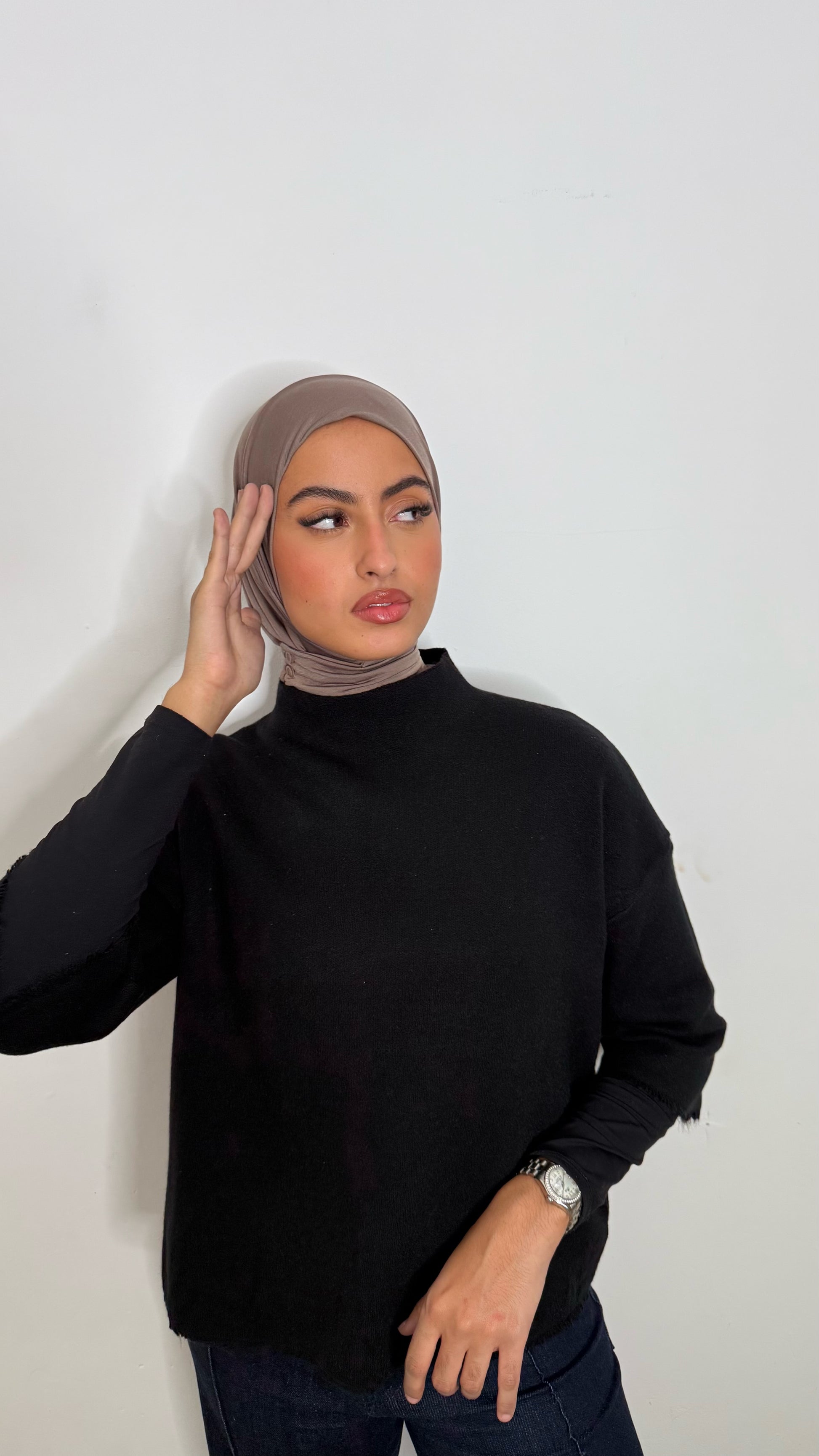 Découvrez la cagoule en jersey ajustable – Taupe, une pièce essentielle à la fois confortable et raffinée.