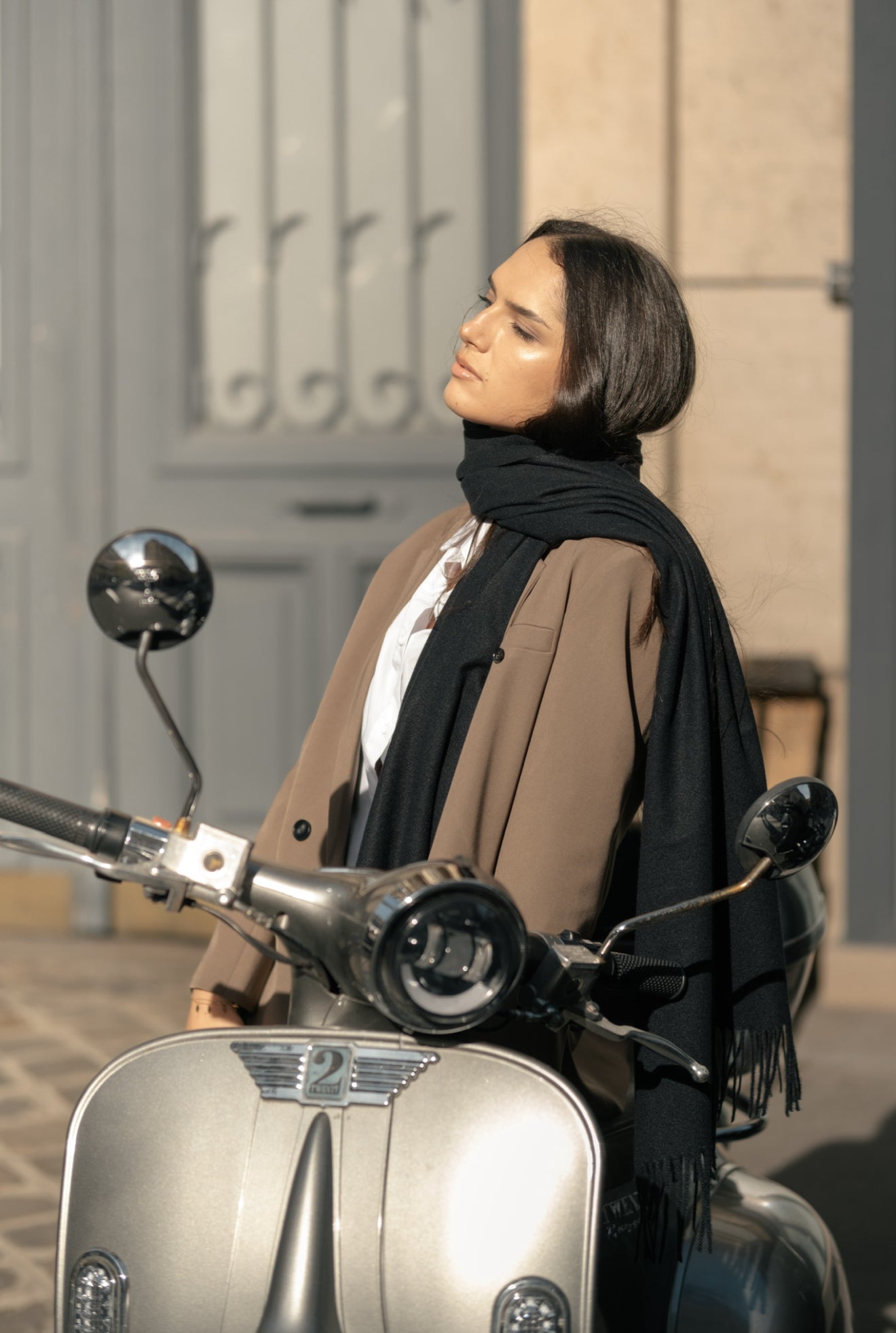 Un accessoire chic et intemporel, à porter sur un manteau ou une veste en cuir pour une touche de couleur et d’élégance.