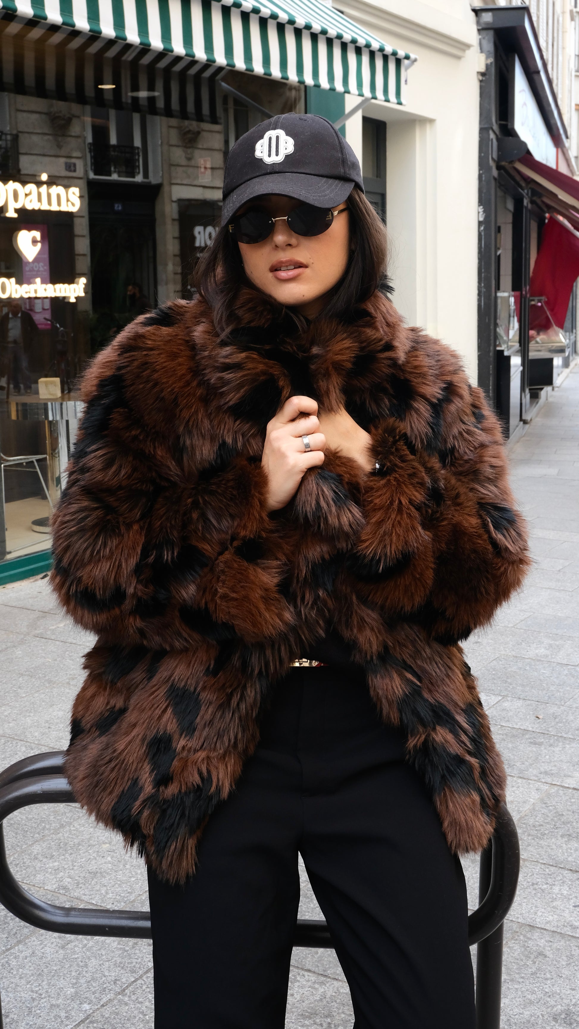Fourrure Vegan marron tacheté noir