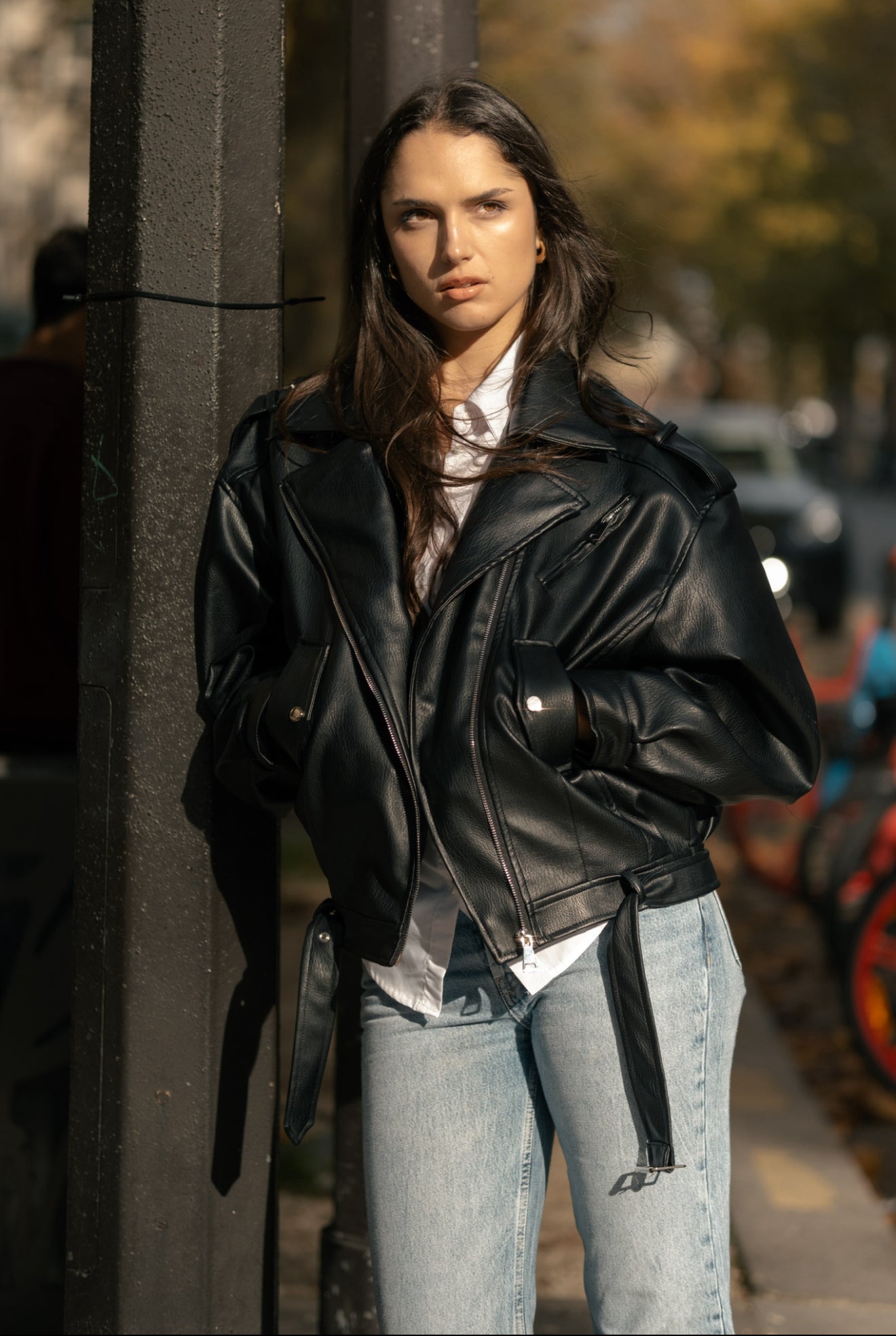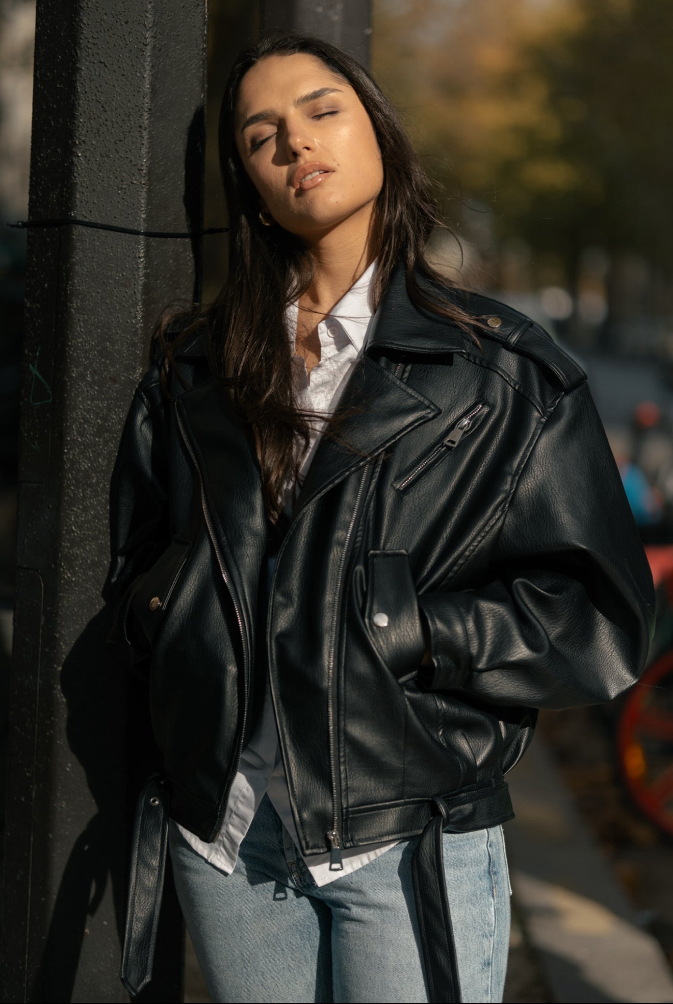 perfecto oversize à manches boules, au look audacieux et moderne. Une pièce forte qui structure toutes tes tenues.